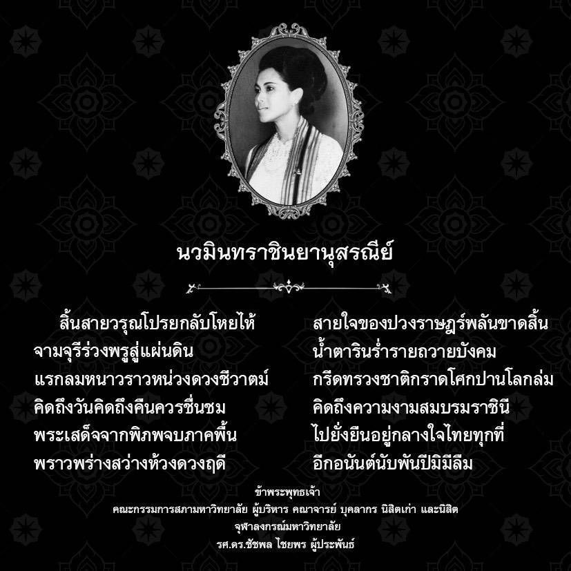 จุฬาลงกรณ์มหาวิทยาลัยขอน้อมรำลึกในพระมหากรุณาธิคุณของ สมเด็จพระนางเจ้าสิริกิติ์ พระบรมราชินีนาถ พระบรมราชชนนีพันปีหลวง ล้นเกล้าล้นกระหม่อมหาที่สุดมิได้